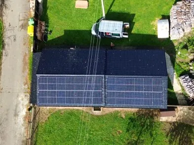 Hybridní FVE na střeše rodinného domu v Ostopovicích o výkonu 11,25 kWp a kapacitě akumulace 16 kWh. Instalované panely jsou značky AIKO, hybridní střídače značky Victron a síťový střídač značky Fronius. Battery box je značky BYD. Elektrárna je optimalizována technologií Tigo.