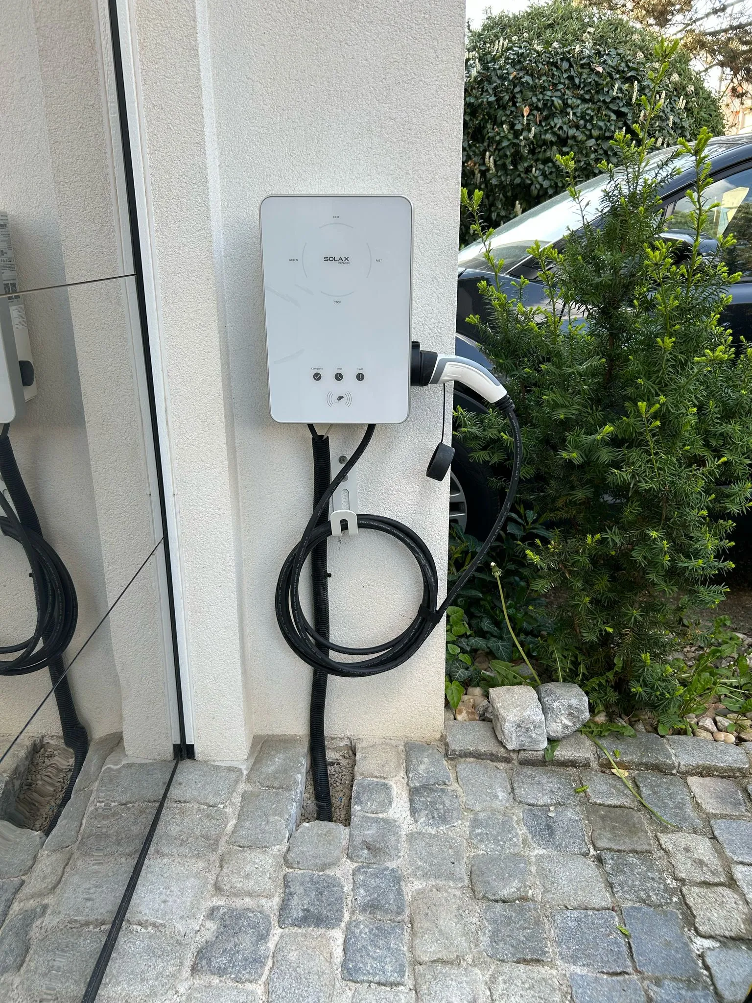 Hybridní FVE s na střeše řadového domu v Brně Stránicích. Instalované panely o celkovém výkonu 14,1 kWp jsou značky AIKO, použitý střídač , baterie s kapacitou 15,3 kWh a nabíjecí stanice pro elektromobil jsou značky SolaX. Elektrárna využívá optimalizační a bezpečností technologii Tigo, díky které je FVE schopna konzistentně vyššího výkonu a která zvyšuje její požární bezpečnost.