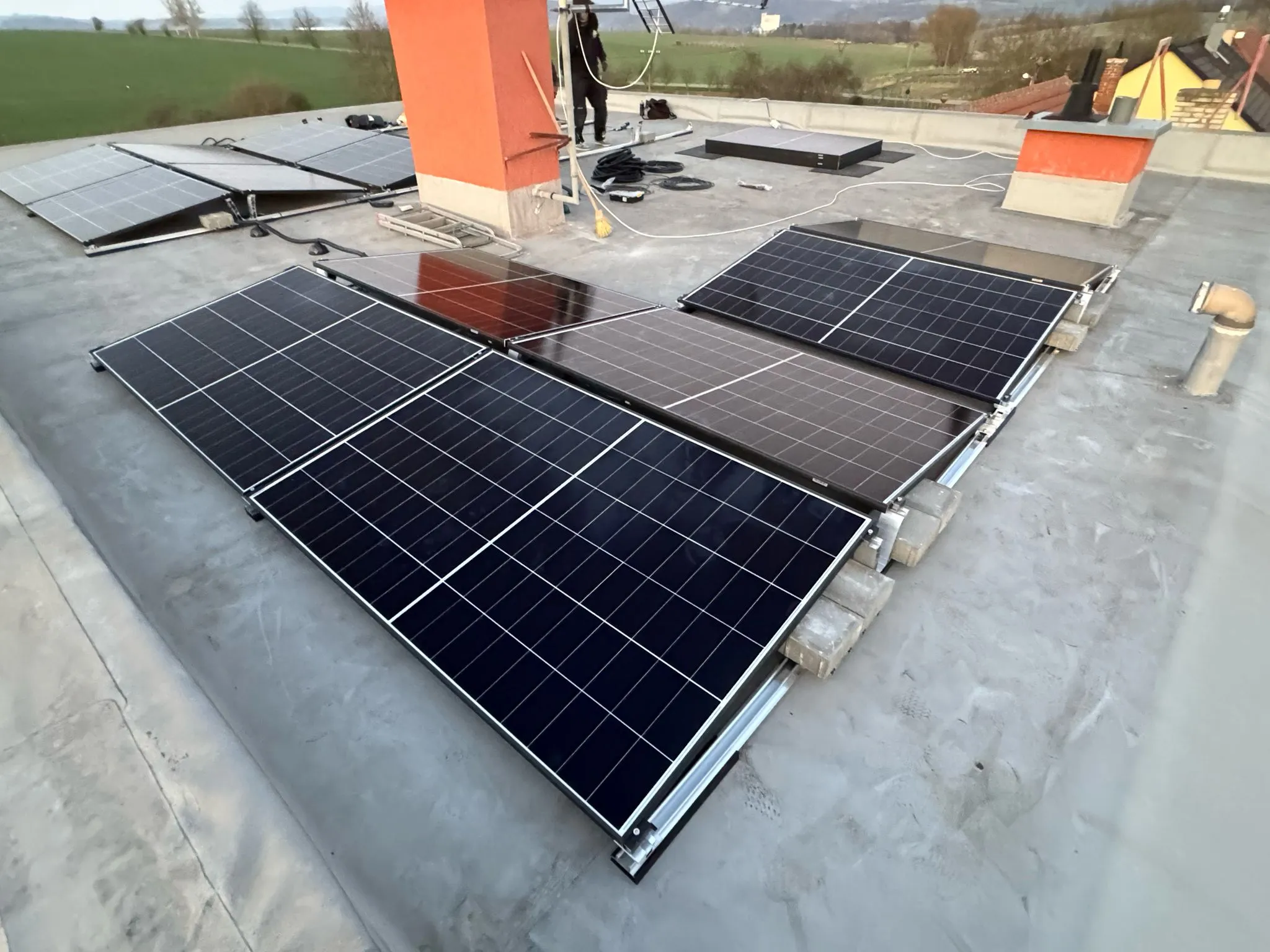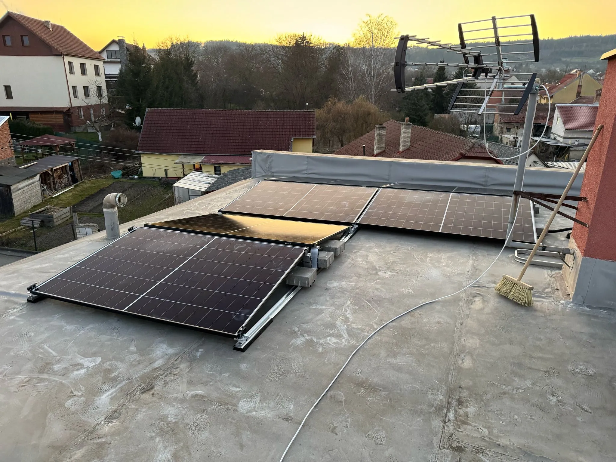 Hybridní FVE s na střeše rodinného domu ve Voděradech. Instalované panely o celkovém výkonu 8,46 kWp jsou značky AIKO, použitý střídač, nabíječka elektromobilů a baterie s kapacitou 17,9 kWh značky SolaX. Elektrárna využívá optimalizační a bezpečností technologii Tigo, díky které je FVE schopna konzistentně vyššího výkonu a která zvyšuje její požární bezpečnost.
