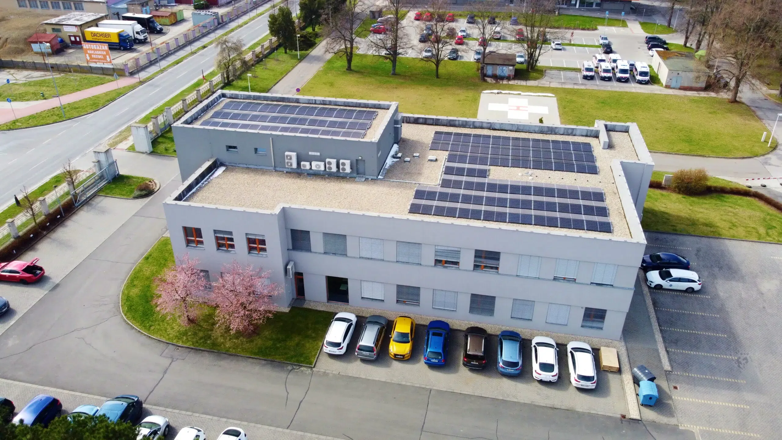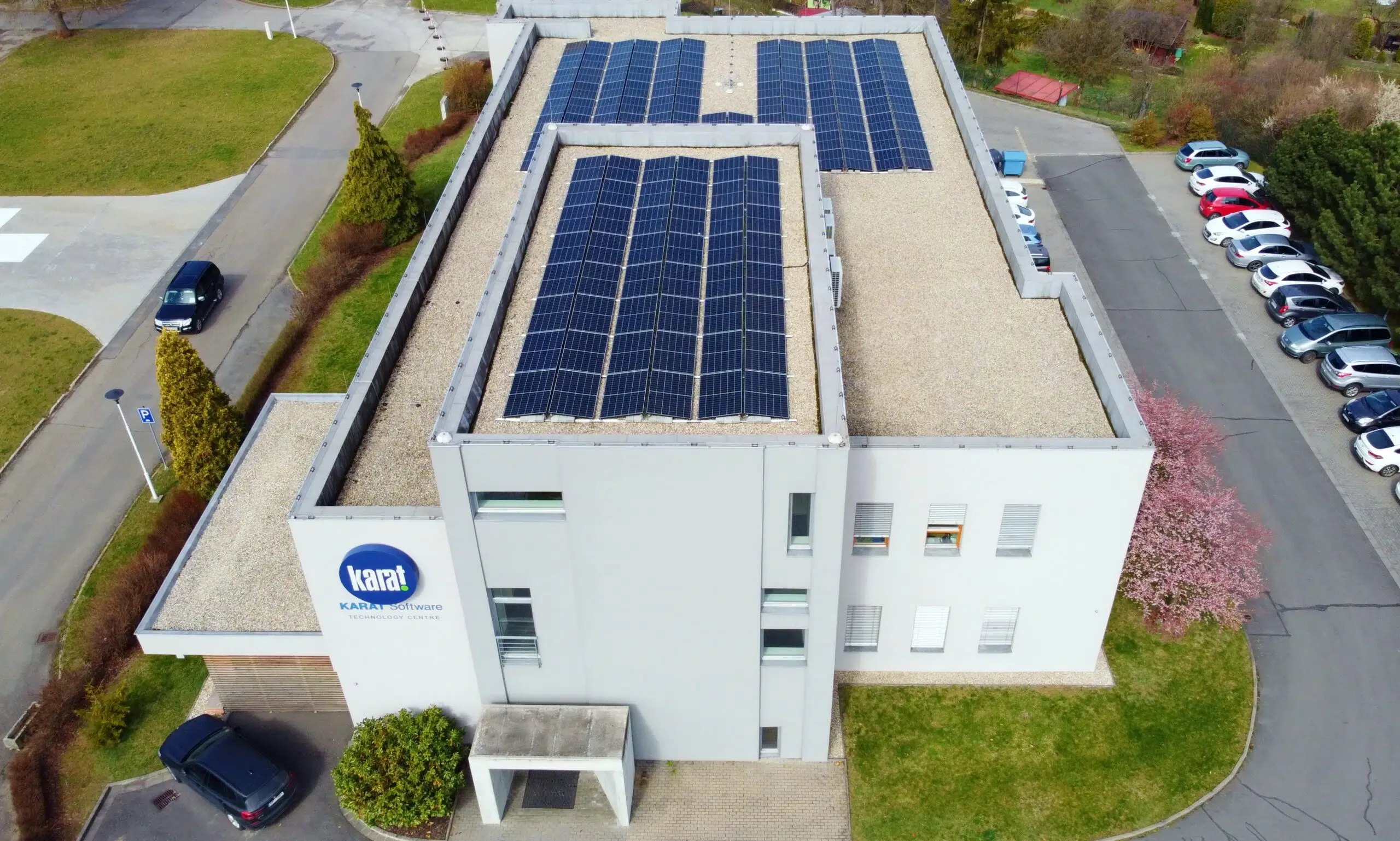 Hybridní FVE na střeše sídla softwarové firmy v Přerově o výkonu 65,52 kW a kapacitou bateriového úložiště 46,4 kWh. Použité panely jsou značky München Solar, střídače a baterie značky SolaX.