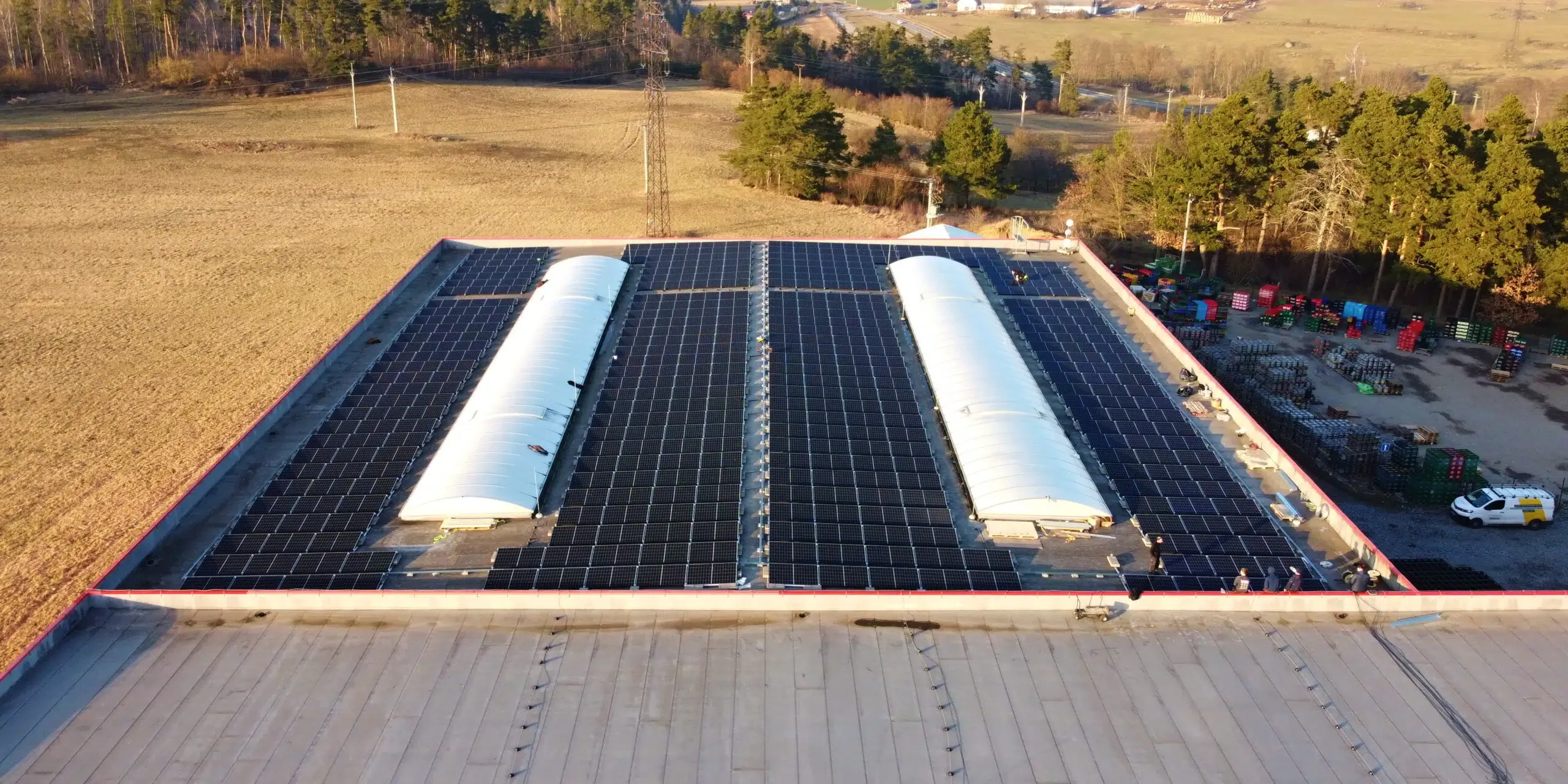 Hybridní FVE na střeše skladovací haly v Třebíči o celkovém výkonu 190,7 kW a kapacitou akumulace 486 kWh. Instalované panely jsou značky Canadian Solar, baterie značky Alpha ESS. Použité střídače jsou dvou značek - Alpha ESS a Fronius.
