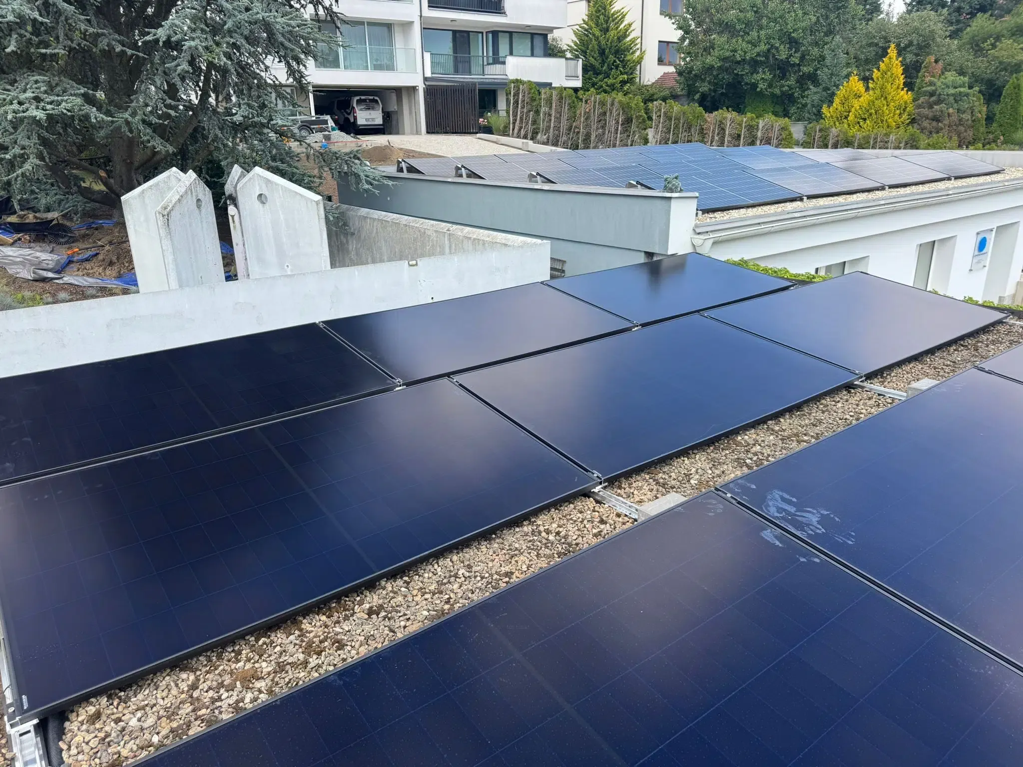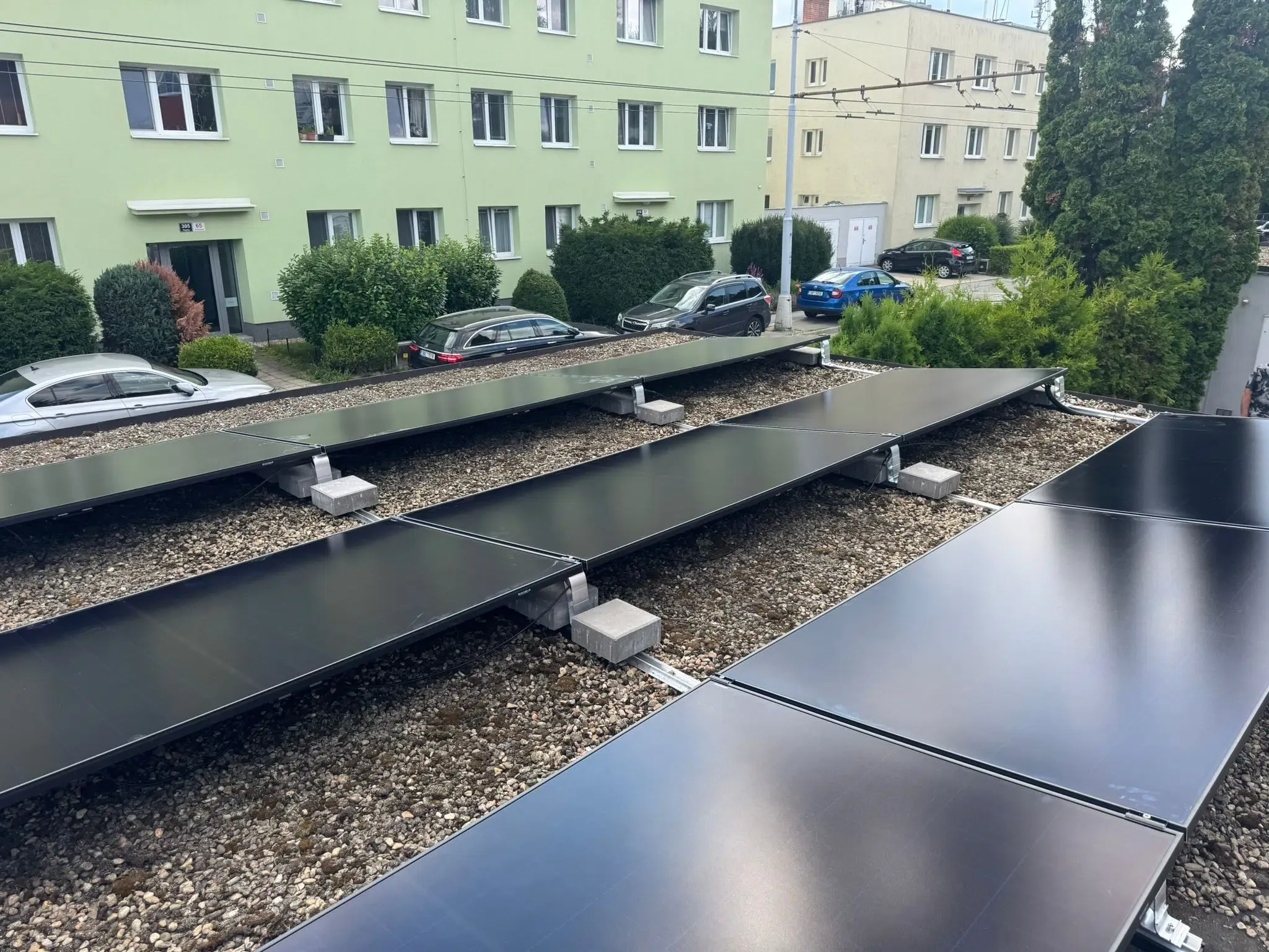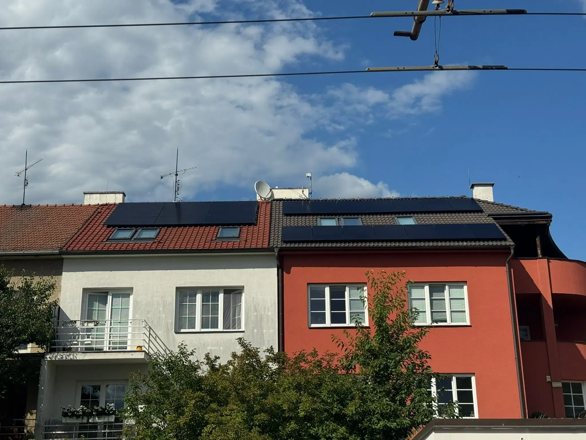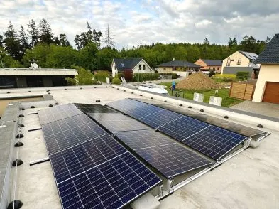 Hybridní FVE s na střeše řadového domu v Brně Stránicích. Instalované panely o celkovém výkonu 18 kWp jsou značky AIKO, použitý střídač a baterie s kapacitou 15,3 kWh jsou značky SolaX. Elektrárna využívá optimalizační a bezpečností technologii Tigo, díky které je FVE schopna konzistentně vyššího výkonu a která zvyšuje její požární bezpečnost.