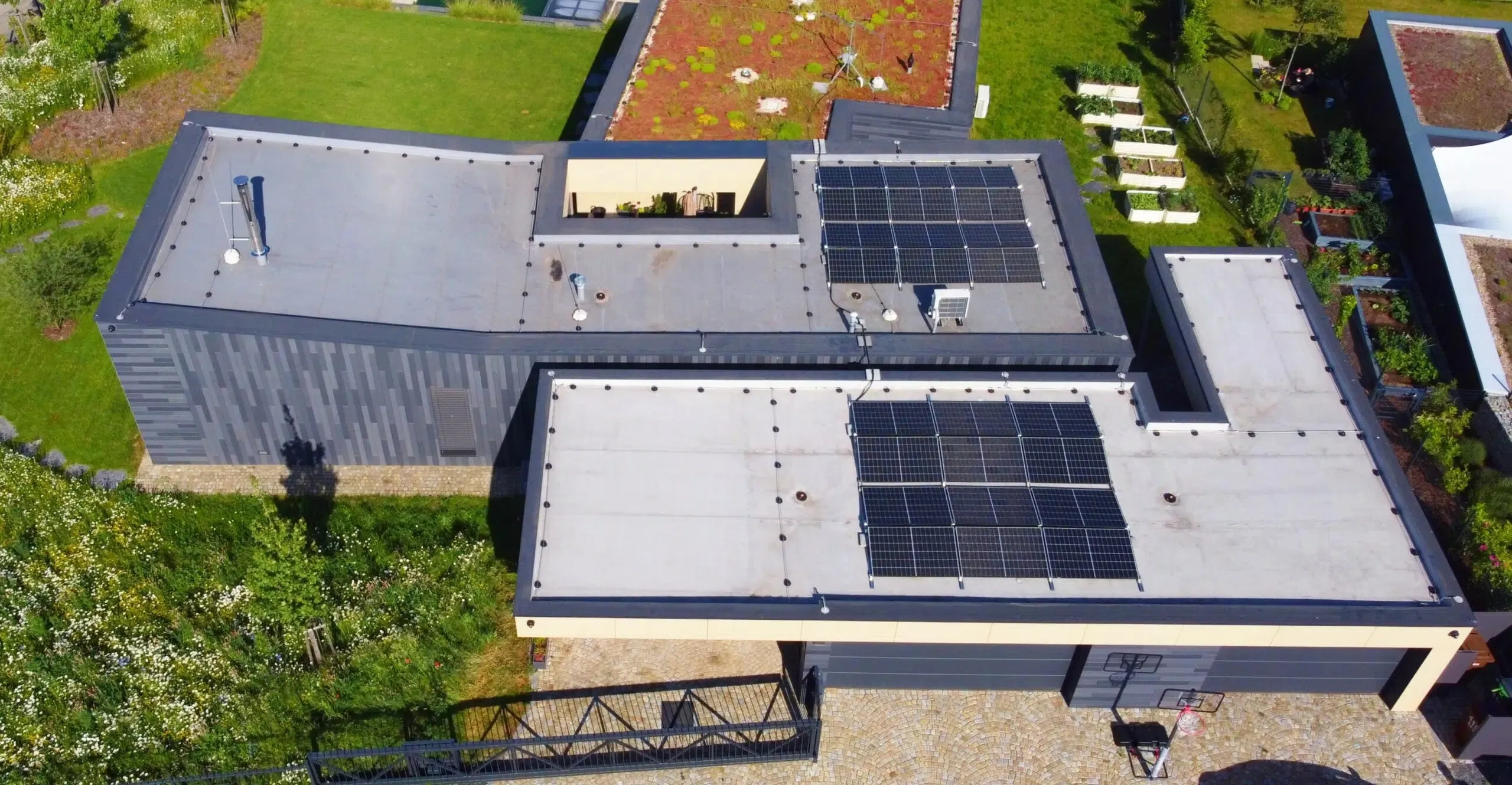 FVE o výkonu 9,84 kW s akumulací 17,4 kWh na rodinném domě v Češkovicích. Instalace s fotovoltaickými panely Canadian Solar a střídačem a bateriemi značky Solax.