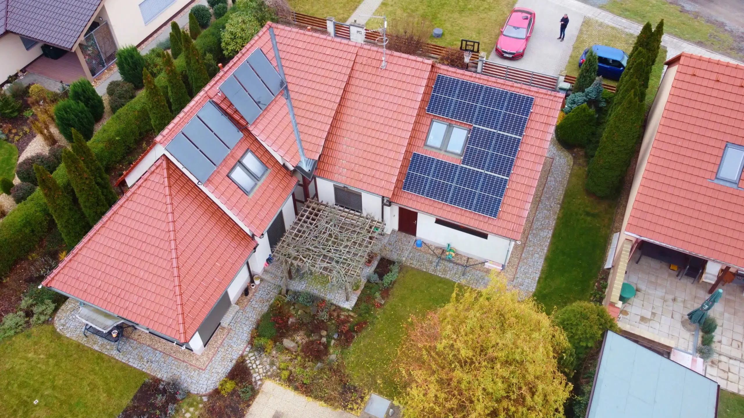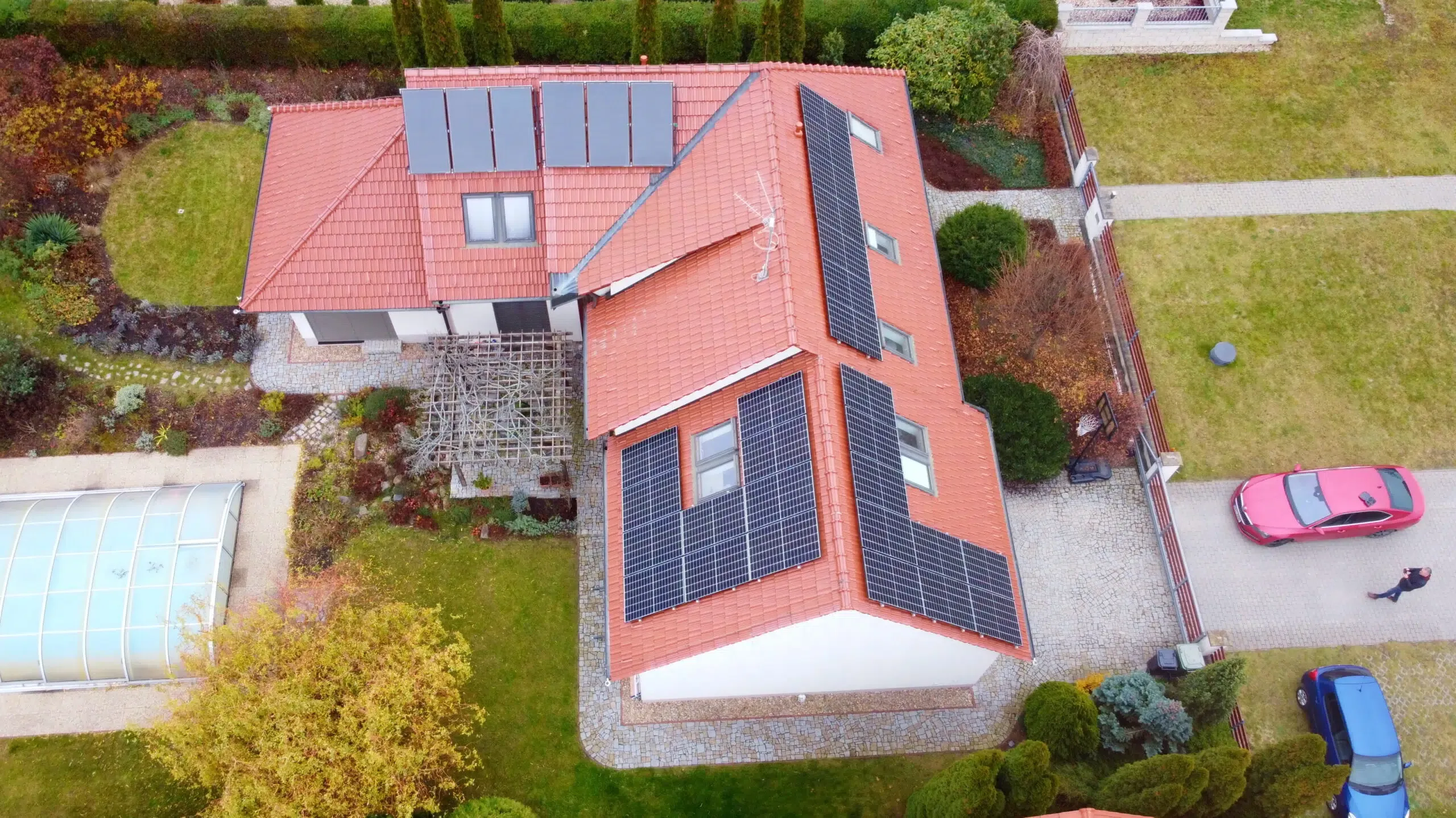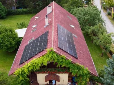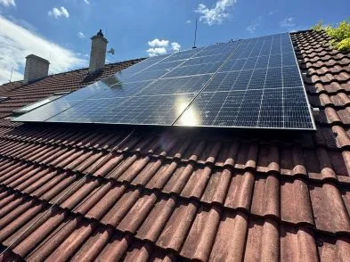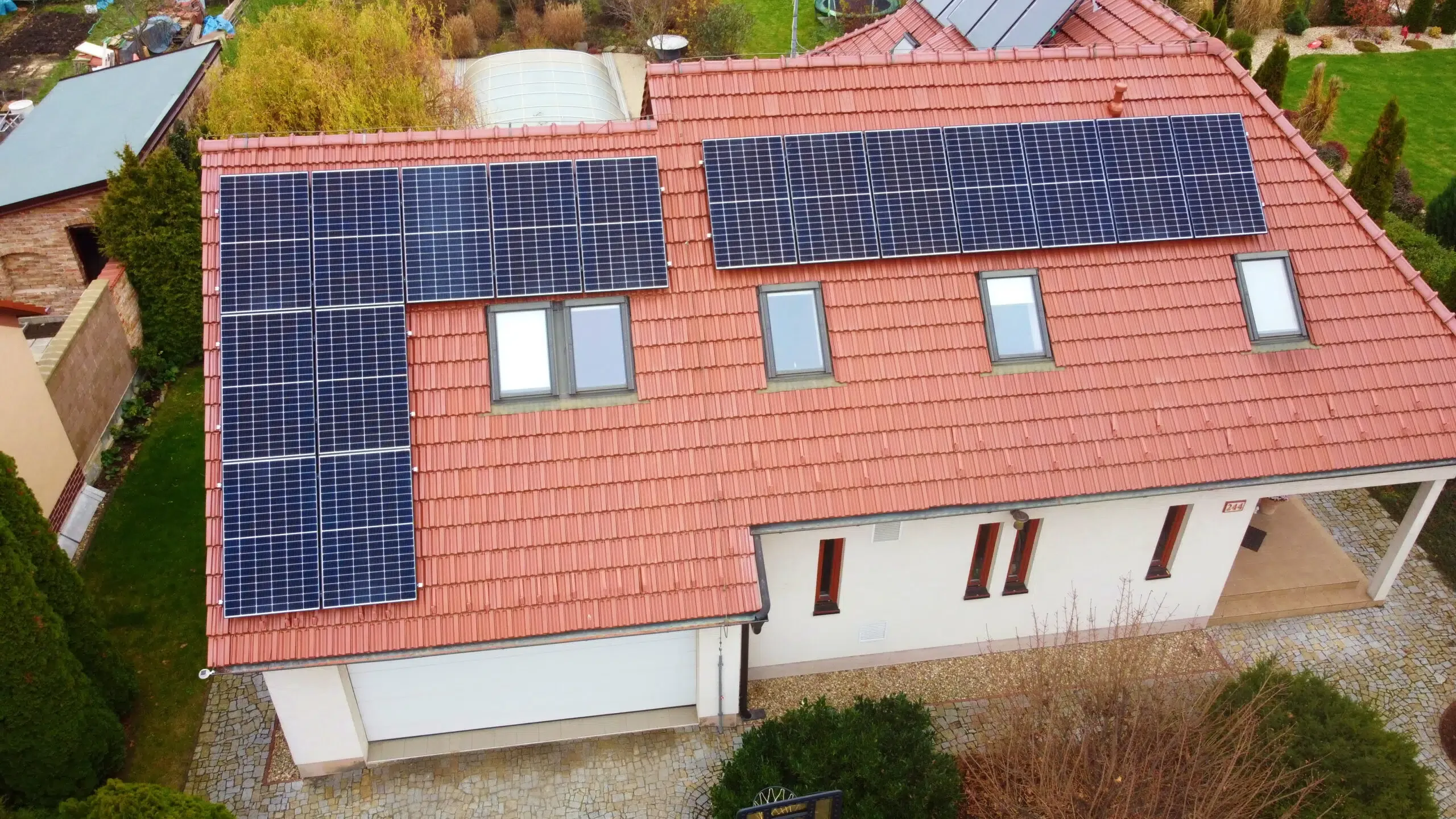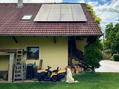 FVE na rodinném domě o výkonu 9,88 kW s akumulací o kapacitě 12,3 kWh. Použité panely jsou značky Canadian Solar a baterie SolaX.